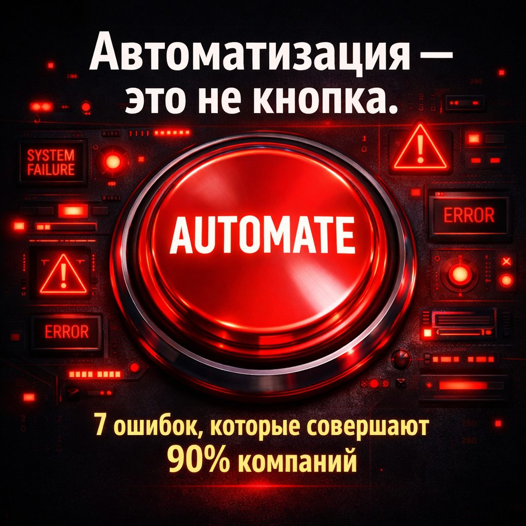 Введение Внедрение автоматизации и ИИ должно экономить время и деньги. Но часто проект «не даёт эффекта»: процессы остаются медленными, сотрудники недовольны, ROI отсутствует. Ниже — 7 типичных ошибок с практическими решениями, примерами и чек-листами. Ошибка 1 — нет бизнес-целей и метрик Проблема: автоматизируют ради технологии, а не ради результата. Без KPI невозможно понять, работает ли